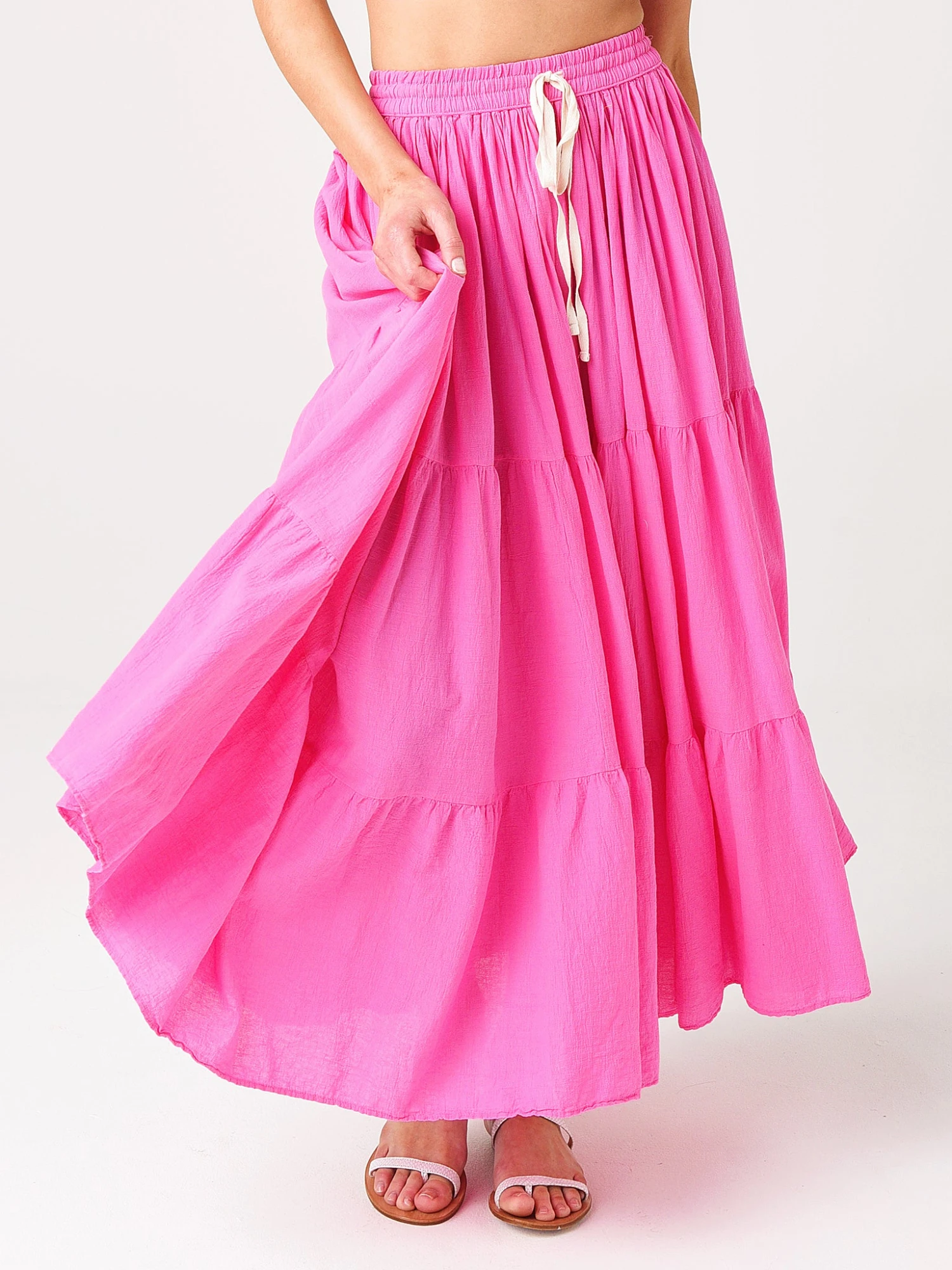 Effortless beach vibes are just a twirl away in the 9 Seed Women’s Core Cotton Tier Martinique Maxi Skirt.