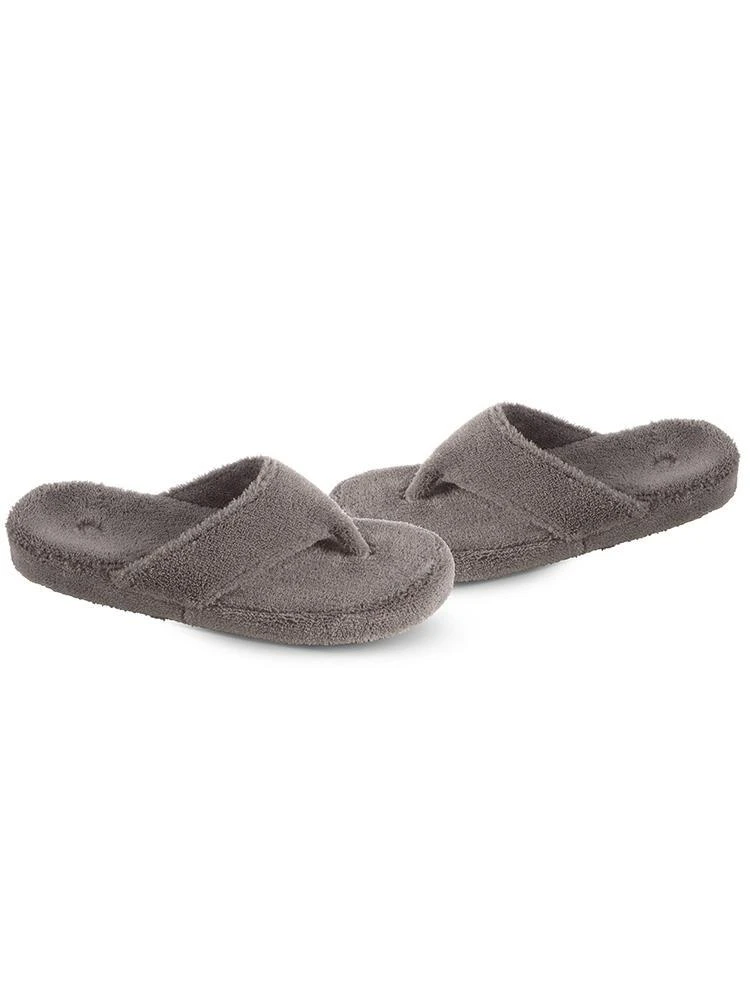 S uper soft and cushy, the New Spa Thong Style Slippers will especially appeal to those who like thong-style sandals. Wear them post-bath or on a lazy day at home and get the feel-good relaxation that you need. We like that they can be worn outside. Enjoy yourself on your day off and soothe your spirits with the New Spa Thong Style Slippers. Velvety soft, easy- care spa terry wraps the foot in comfort and style. Environmentally friendly construction – vegan!. Fully cushioned and contoured footbed for at-home spa comfort. Easy to care for; machine wash and dry. Fuller toe shape for enhanced comfort and fit. Contoured footbed sole construction to better cushion feet. Memory foam insole, heel to toe, to form to the foot. Weatherproof outsole with skid-resistant tread for sure footing.