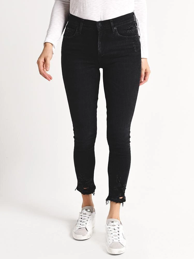 FEATURES:98% Cotton, 2% SpandexHi Rise Skinny Crop | Front Rise: 9 Fit true sizeModel is wearing size 26 jean.