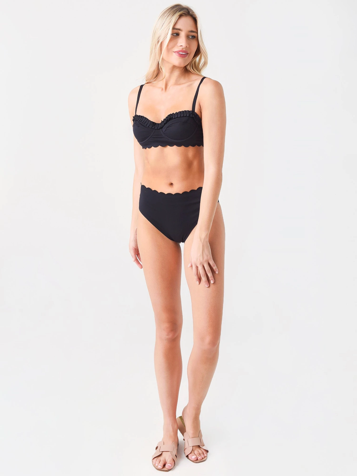 FEATURES:Bikini BottomMid-RiseScalloped Trim WaistbandPull-On WearabilityHigh LegFully LinedModerate CoverageMoisture-Wicking and Quick-DryShell: 80% Polyamide, 20% Elastane | Lining: 88% Polyamide, 12% ElastaneClassic FitModel is wearing size Small bikini bottom.Model’s Measurements: Height: 5’9″ | Bust: 34B | Waist: 26″ | Hips: 37″ | Dress Size: 2-4 (US)