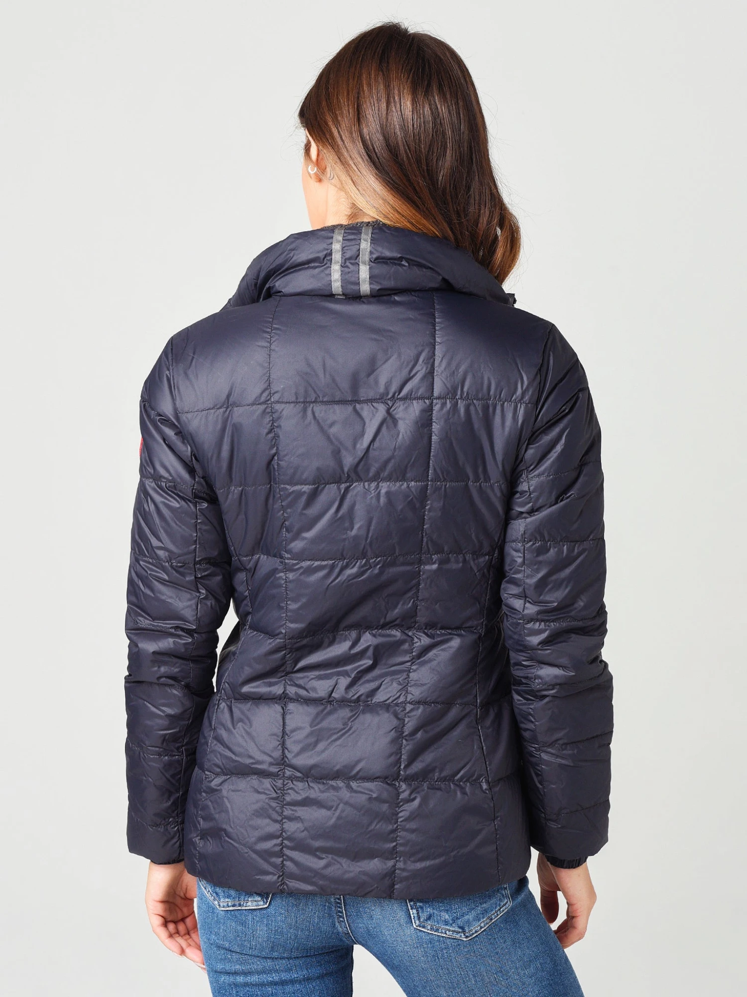 FEATURES:Down JacketZip-Through Stand Collar2-Way Zipper Closure with Storm FlapArticulated Sleeve and Underarm GussetsElasticized Cuffs2 Exterior Pockets1 Interior PocketFeather-Light, Wind-Resistant, Water-Resistant and Downproof750 Fill Power Premium Hutterite White Duck downTEI Rating: TEI 1Can Be Packed Into It’s Own PocketHip LengthSlim FitModel is wearing size small jacket, size small sweater and size 25 jean. Model’s Measurements: Height: 5’9″; Bust: 32C; Waist: 24.5″; Hips: 36″; Dress Size: 2 (US)