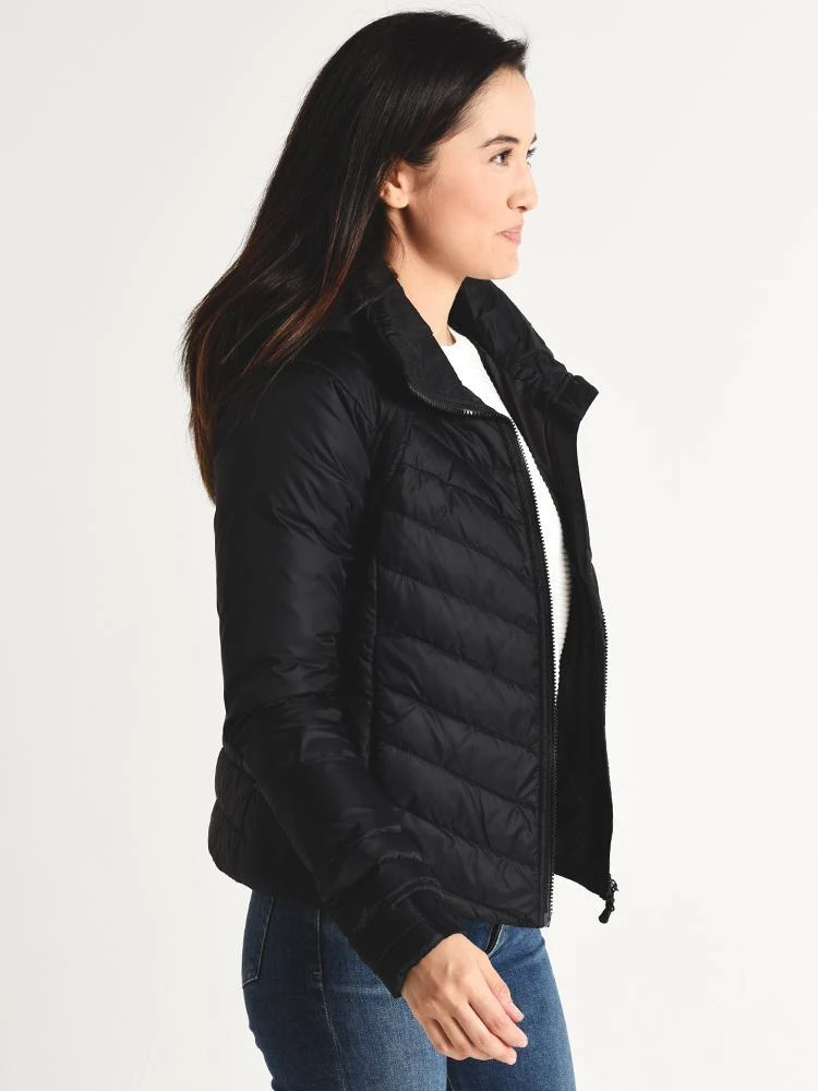 FEATURES:Front 2-way zipper with storm flap for extra protection Brushed tricot at chin guard for comfortInterior security pocket wuth zipper Down-filled, 2-way adjustable hood that stows in collarArticulated sleeves Thermal Mapping technology places performance fabrics where you need them the most to maximize warmth, breathability and movement800 Fill Power Hutterite White Goose DownRegular fit Styled with Poject J sweater Style # 18157, Citizens of Humantiy jeans Style # 1742-850 and Philippe Model shoes Style # CLLD 1005. Model is wearing size small jacket, size small sweater and size 26 jean.