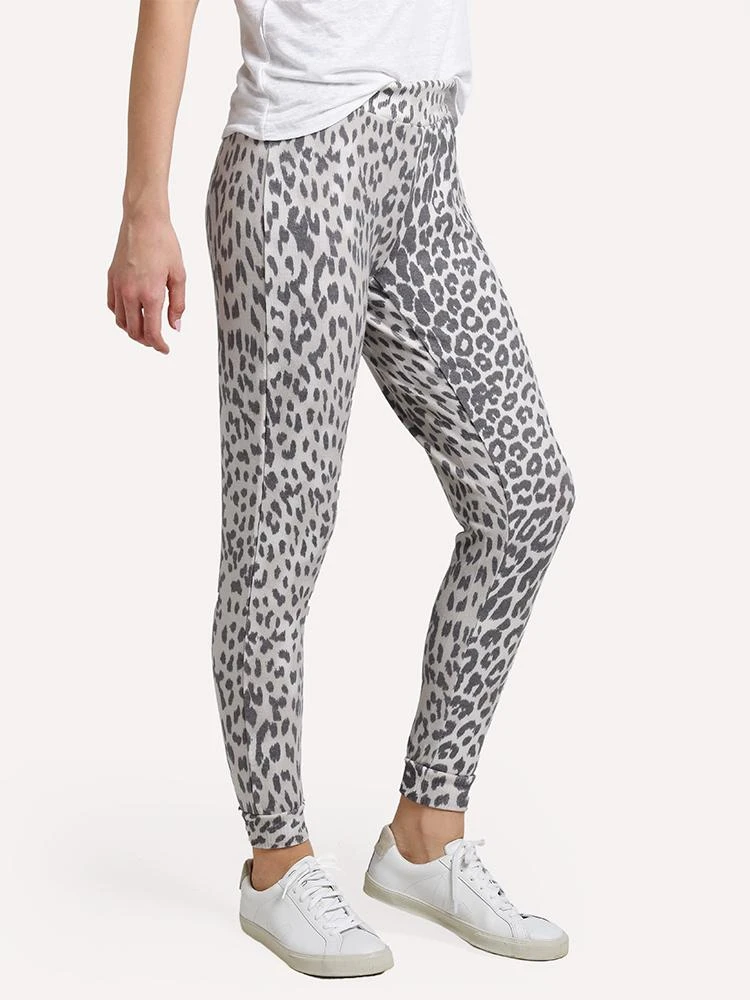 FEATURES:Jogger PantSuper Soft Knit, Poly Rayon BlendLeopard Print GraphicStretchCuffed LegFlat Waistband49% Polyester, 46% Rayon, 5% SpandexStyled with Chaser tee Style # CW7695 and VEJA sneakers style # EA2001W. Model is wearing size Small pant and size Small tee.