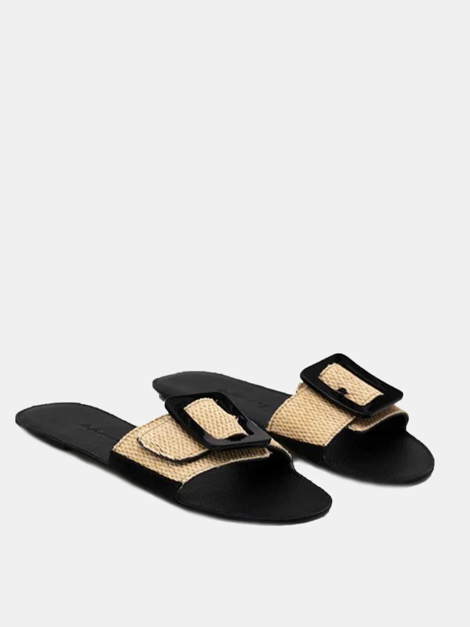 FEATURES:SandalOpen Toe, Rounded ToeSingle Wide Strap with Made-To-Measure BuckleUpper: Woven RaffiaBuckle: AcetateLining: Soft Grained CalfskinInsole: Soft-Grained CalfskinOutsole: LeatherHeel: 5 mm Stacked