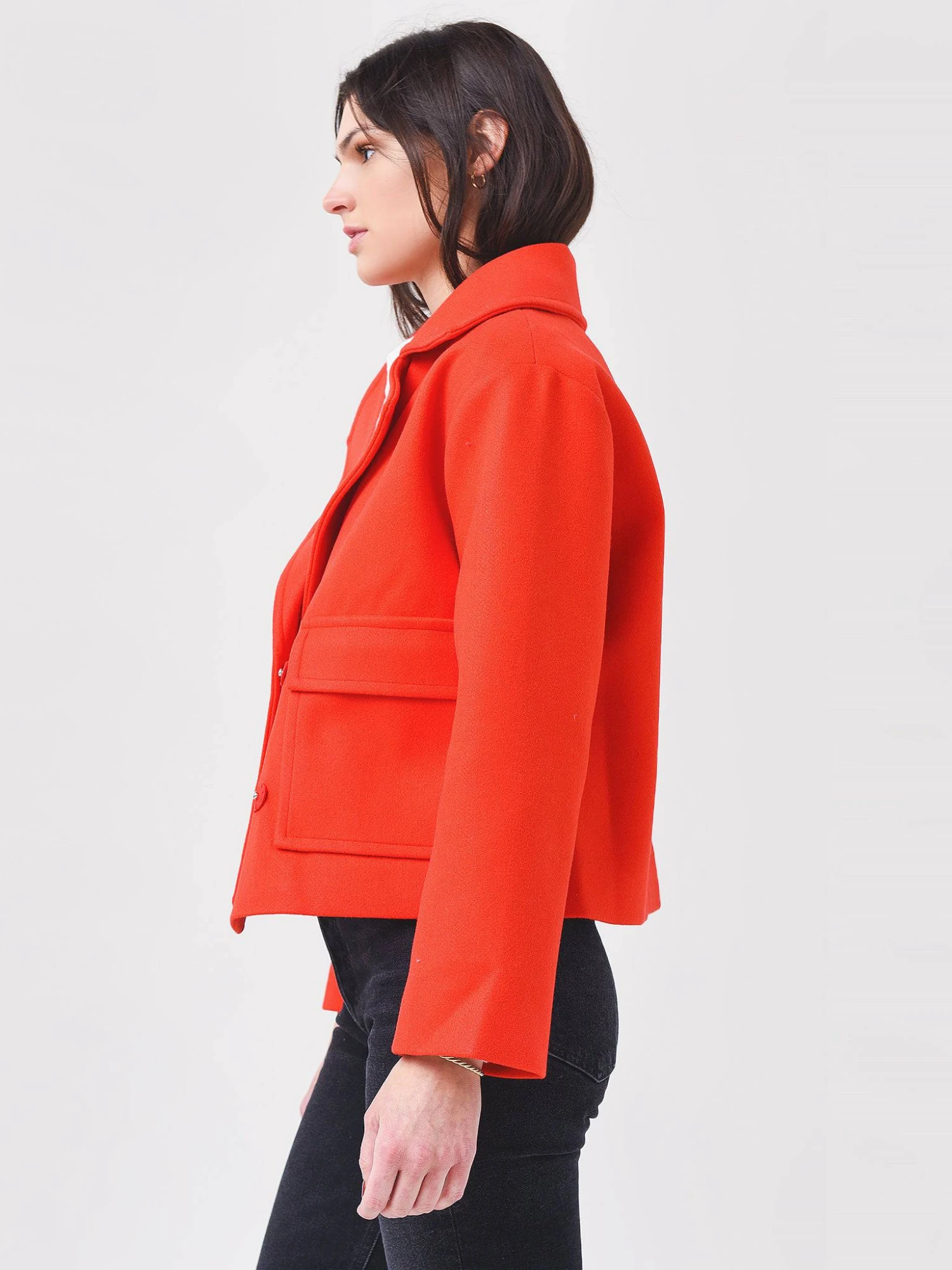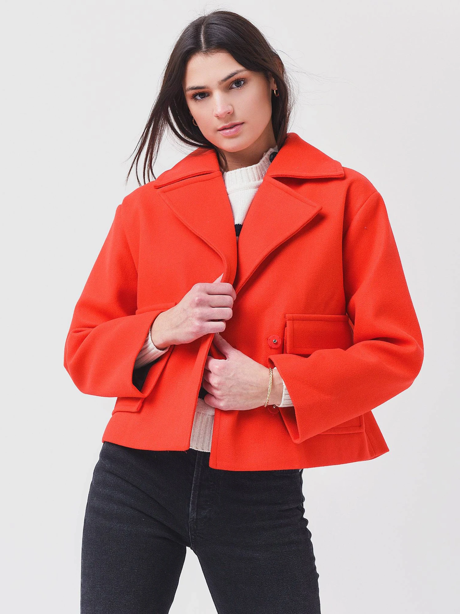 FEATURES:JacketSpread collar, Wide LapelHidden Snap Front ClosureLong Sleeves with Snap TabFront Flap Patch PocketsCroppedBoxy cutMid Weight Non-Stretch FleeceLinedClassic FitStraight Hem100% PolyesterModel is wearing size Small jacket.Model’s Measurements: Height: 5’9.5″ | Bust: 34A | Waist: 26.5″ | Hips: 37″ | Dress Size: 2-4 (US)