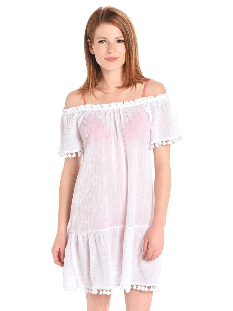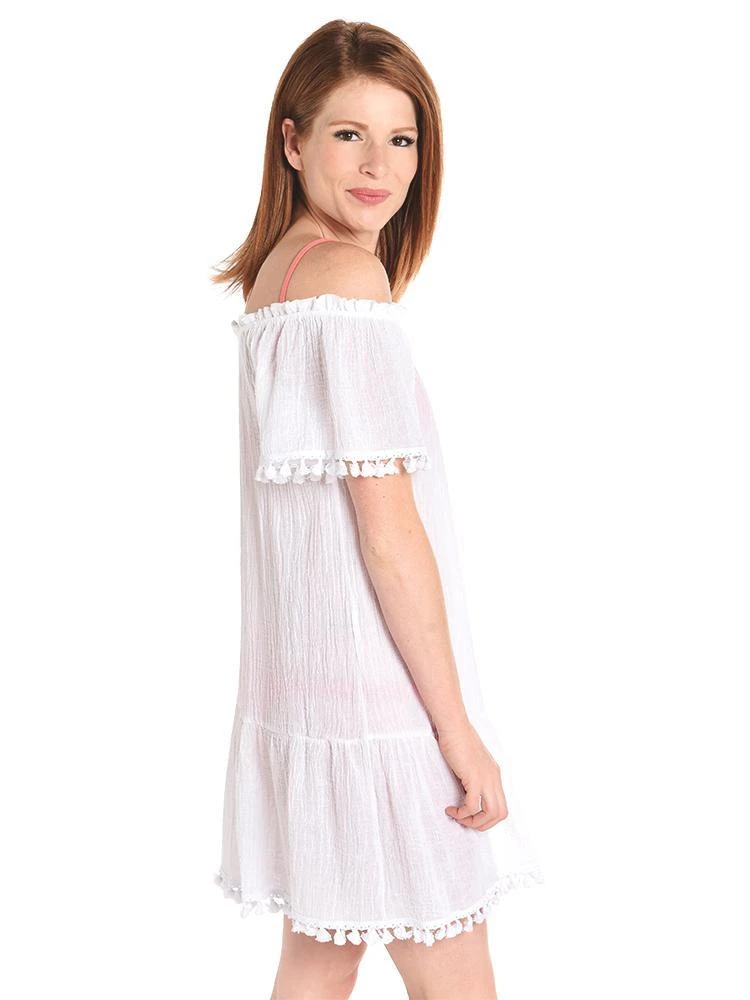 The off the shoulder gauze Eberjey Sea Breeze Deavon Coverup is chic and right on trend with tassel trim.