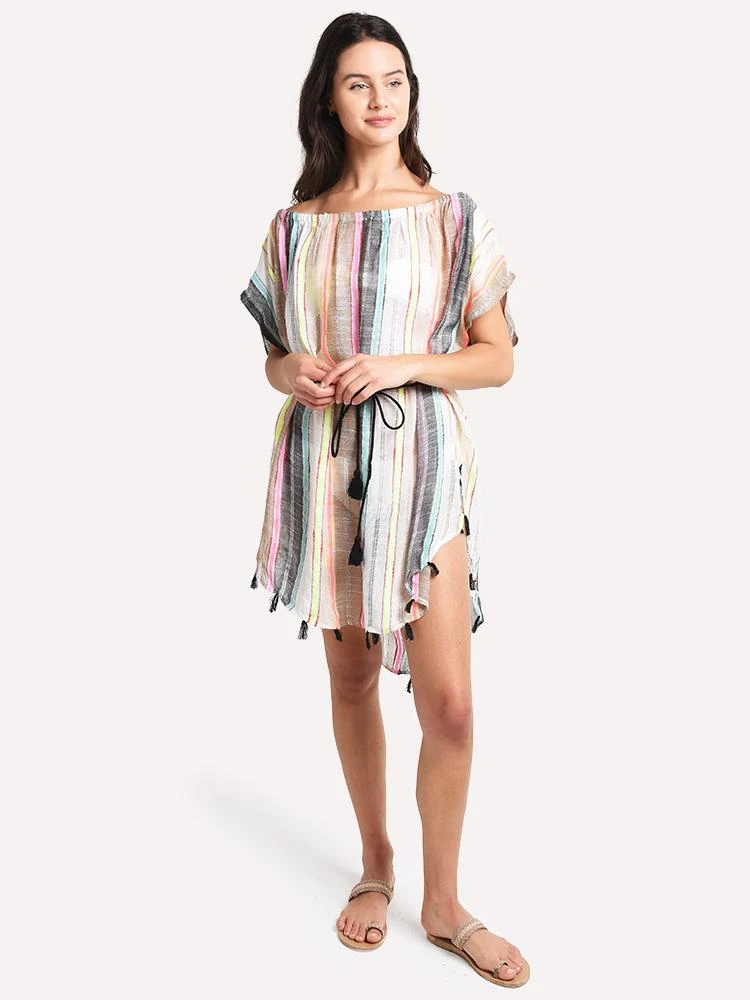 Hit your next vacation in the Echo Boardwalk Stripe Seaside Caftan