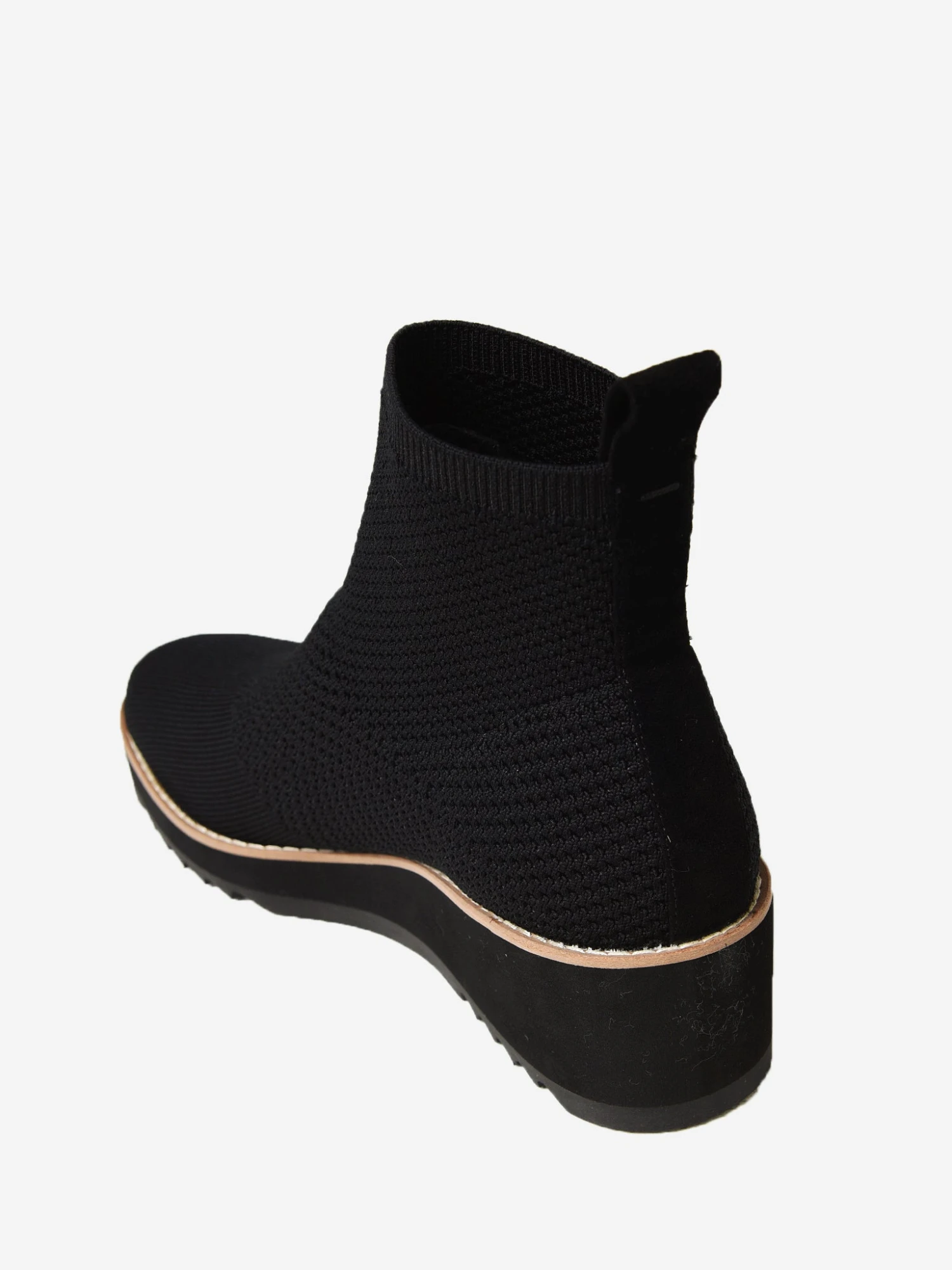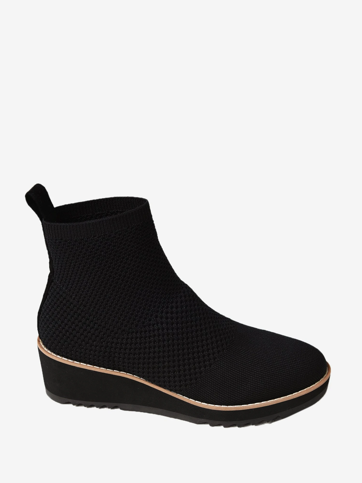 Slip on the comfortable Eileen Fisher Shoes London Recycled Stretch Knit Bootie to complete your cold-weather look.