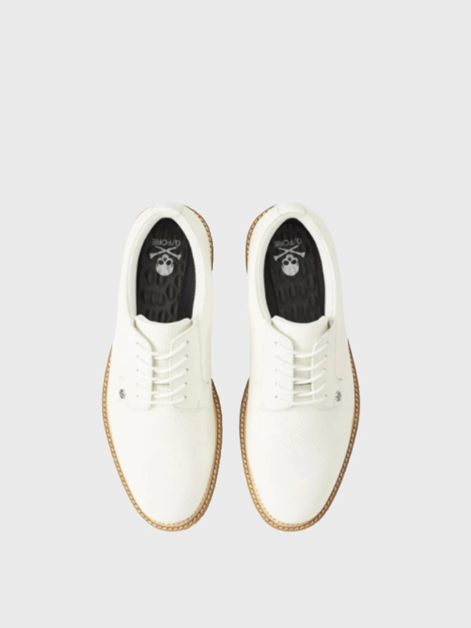FEATURES:Full grain waterproof pebble leather upperLace-upWashable and removable anti-microbial footbedTripled cushioned footbedBespoke cleat design for on-course tractionPadded interior Anti-microbial lining Spot clean