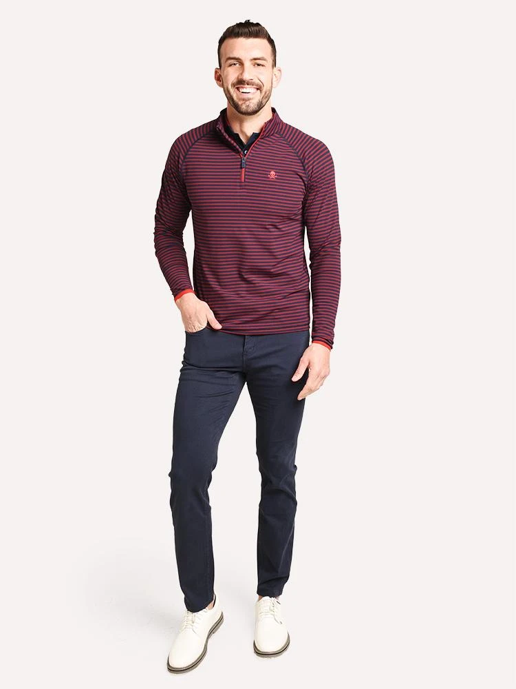 The G/Fore Men’s Striped Midlayer 1/4 Zip Sweater delivers warmth, comfort and exceptional mobility whether you’re at the gym or the course, this midlayer will keep your performance high swing after swing.