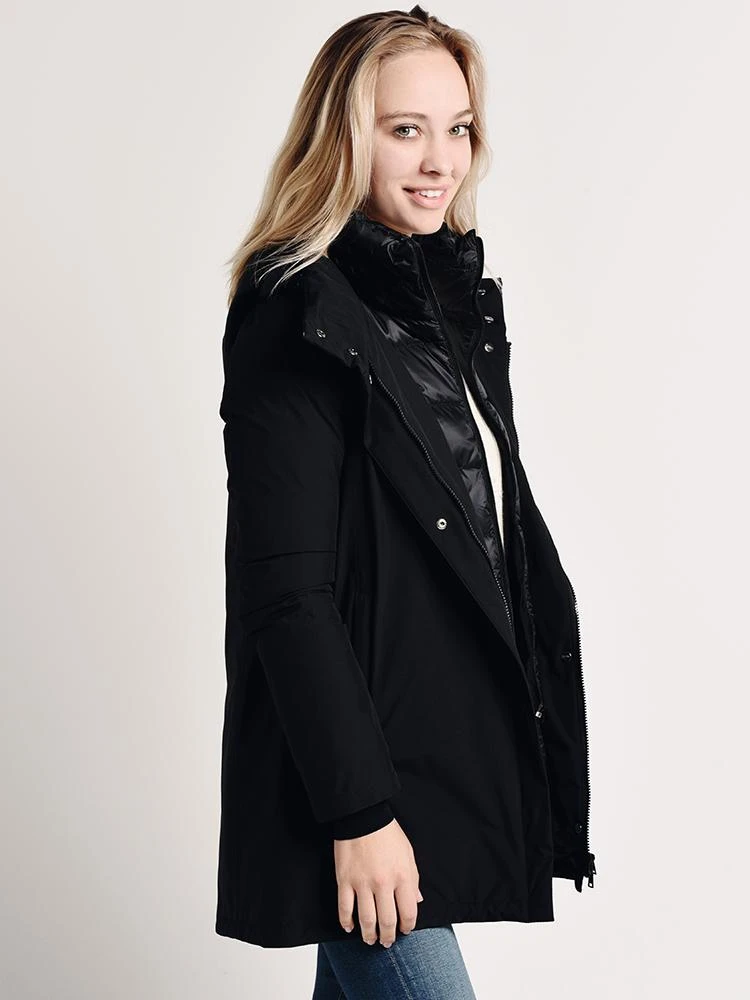 FEATURES:Two layers Detachable hood and windguard with drawstringTwo snaps on collar Hidden 2-way zipper Knit cuffs Front slit pockets Goretex and Paclite membrane technology to protect againt water and wind while still providing breathabilityInternal layer: Laminar goose down Outer layer: 100% polyester Imported Styled with Vince sweater Style # V525277965, Citizens of Humanity jeans Style # 1416C-989 and Philippe Model shoes Style # CLLD 1005. Model is wearing size 42 jacket, size small sweater and size 26 jean.