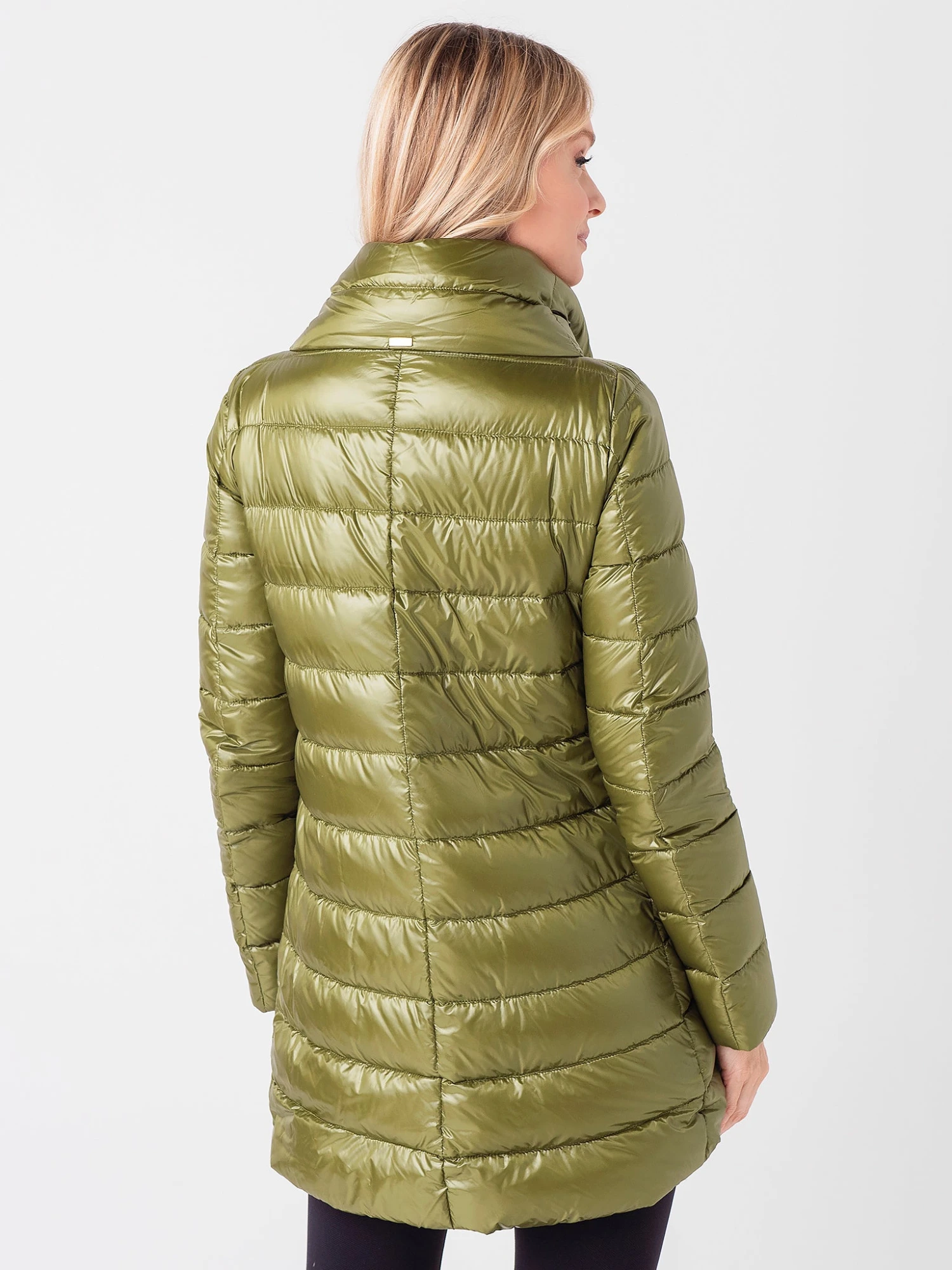 FEATURES:Lightweight Down JacketFold-Over High CollarButton-Down FrontSnap-Button PlacketPadded PanelingNylon PanelingOn-Seam Hand PocketsInjected DownLightweightClassic FitFace 1: 100% Nylon | Face 2: 55% Cotton, 45% Polyester | Fill: 100% PolyesterModel is wearing size 40 jacket.Model’s Measurements: Height: 5’10”; Bust: 34C; Waist: 25.5″; Hips: 36″; Dress Size: 2-4 (US)