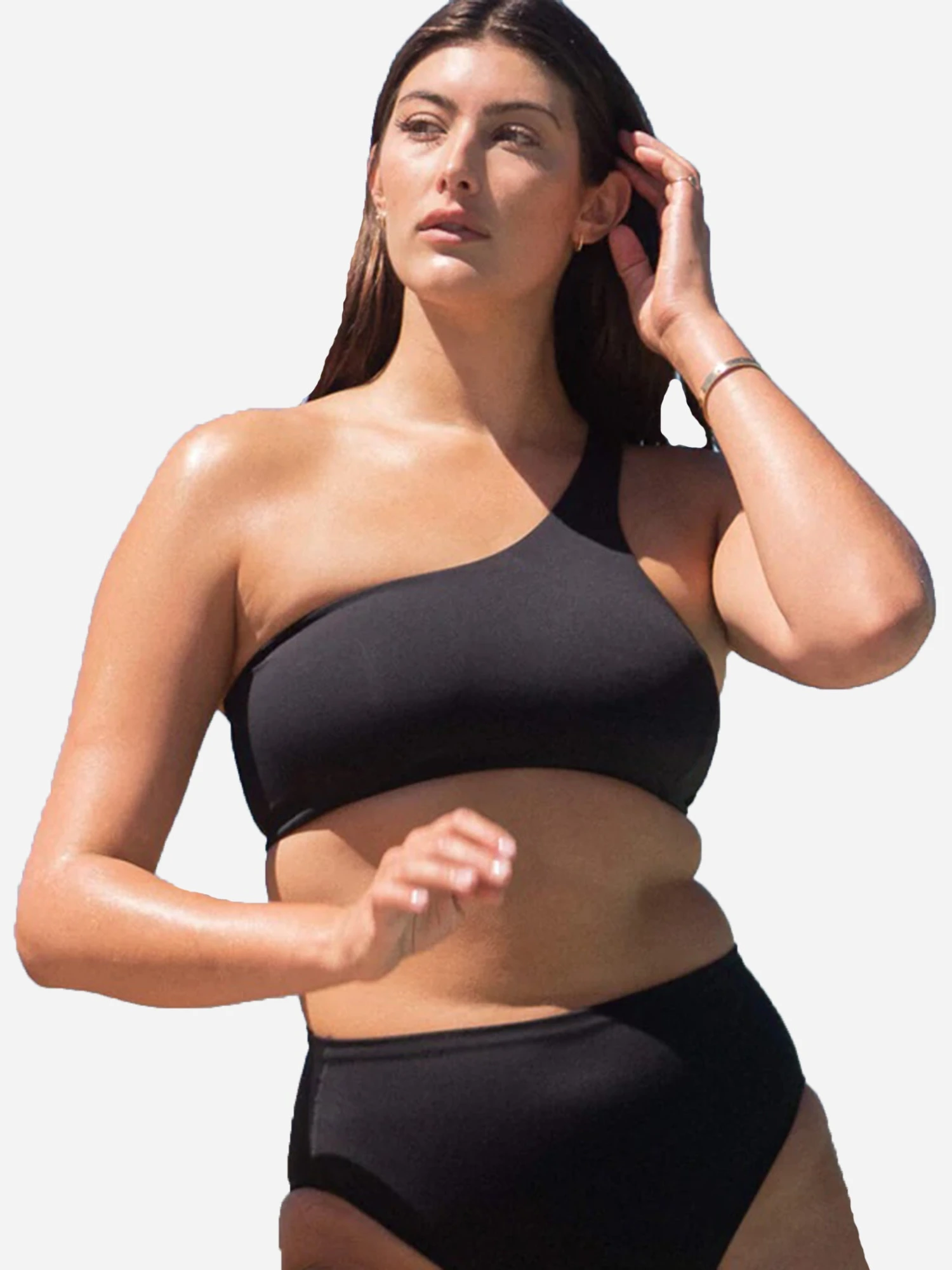 FEATURES:Swim TopOne Shoulder StrapA-D CupMedium CoverageSuper SoftFade + Snag ResistantQuick-DryingSlim Fit46% Nylon, 38% Polyester, 16% SpandexMade in ItalyModel is wearing size Small swim top.Model’s Measurements: Height: 5’9″ | Bust: 34C | Waist: 25″ | Hips: 35.5″ | Dress Size: 4 (US)