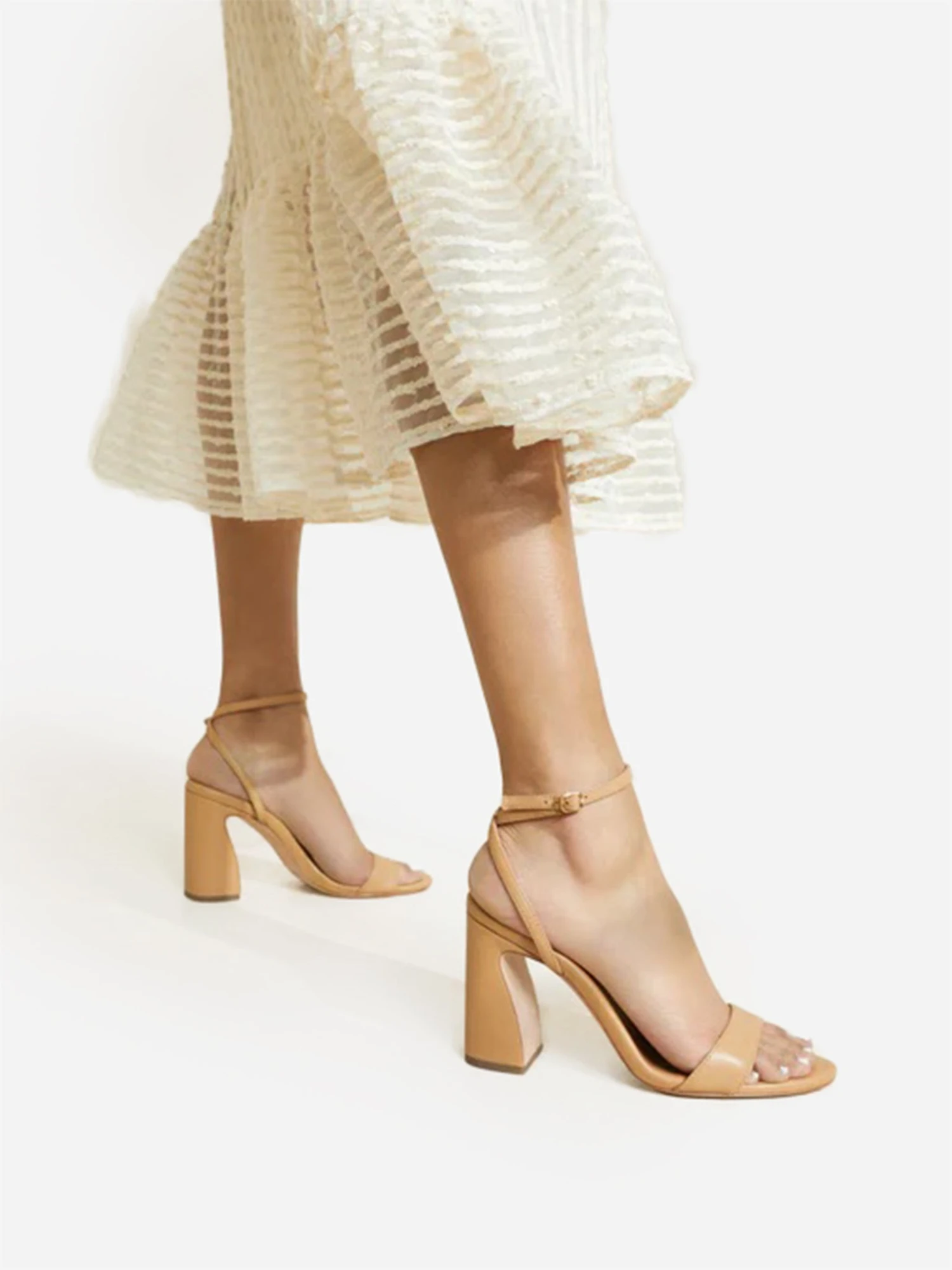 FEATURES:Heeled SandalOpen ToeAdjustable Ankle StrapCurved Heel100% LeatherHeel Height: 3.75 in.