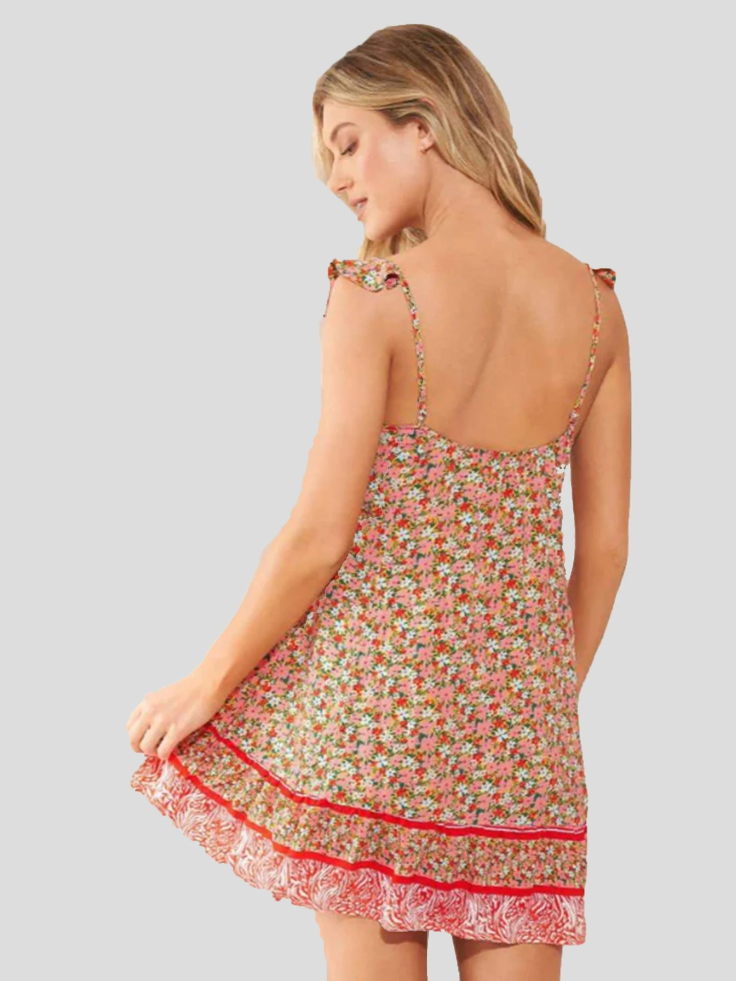 FEATURES:Cover-UpV-NecklineThin, Adjustable Straps with Ruffle TrimLightweight FabricationA-Line SilhouetteAll-Over Novelty PrintFlounce Hem100% ViscoseClassic Fit