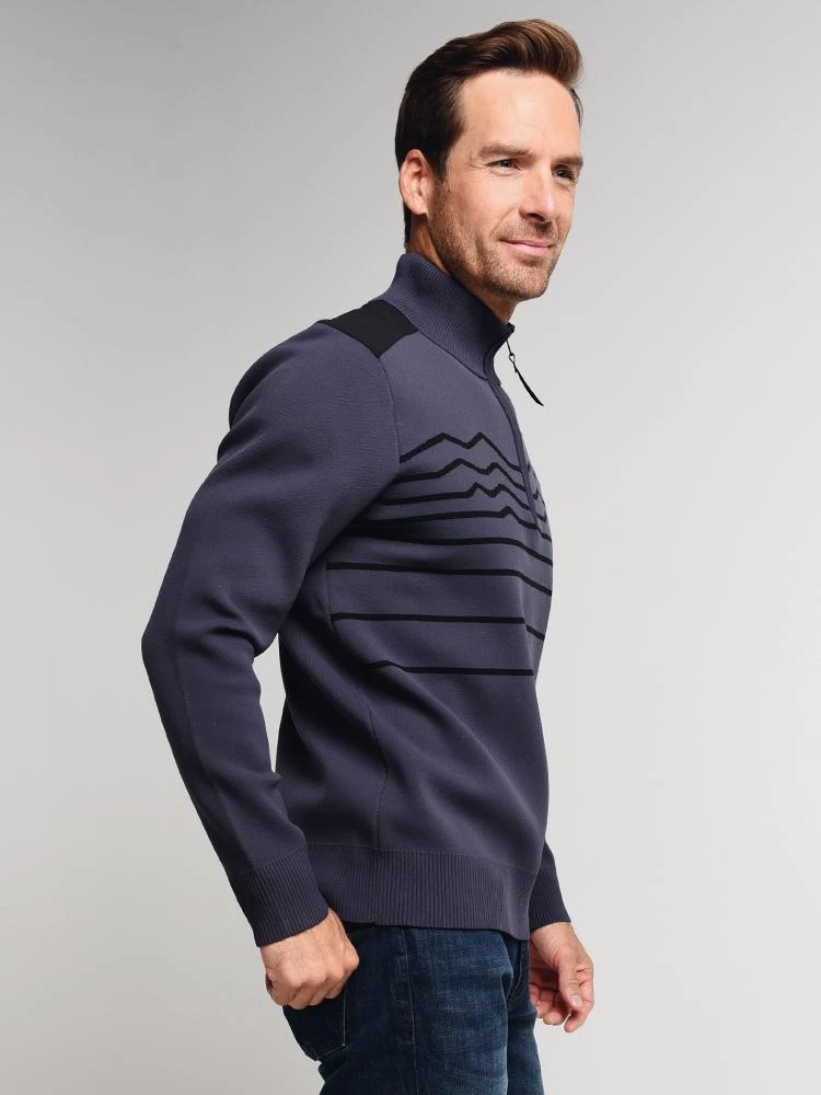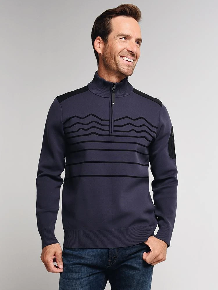A refined after-ski sweater for lounging close to the lodge fire. Reinforced shoulder panels and zippered sleeve pocket add versatility for day-to-day use.