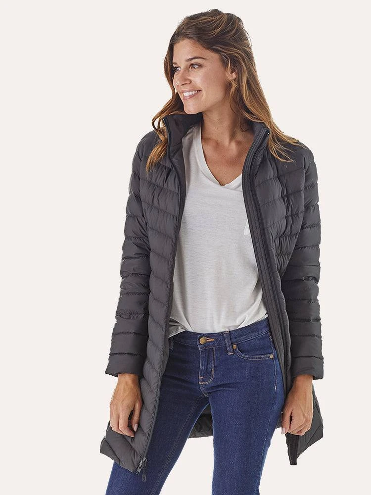 The Patagonia Women’s Silent Down Parka is a modern classic made from recycled down for a warm functional Zip front.
