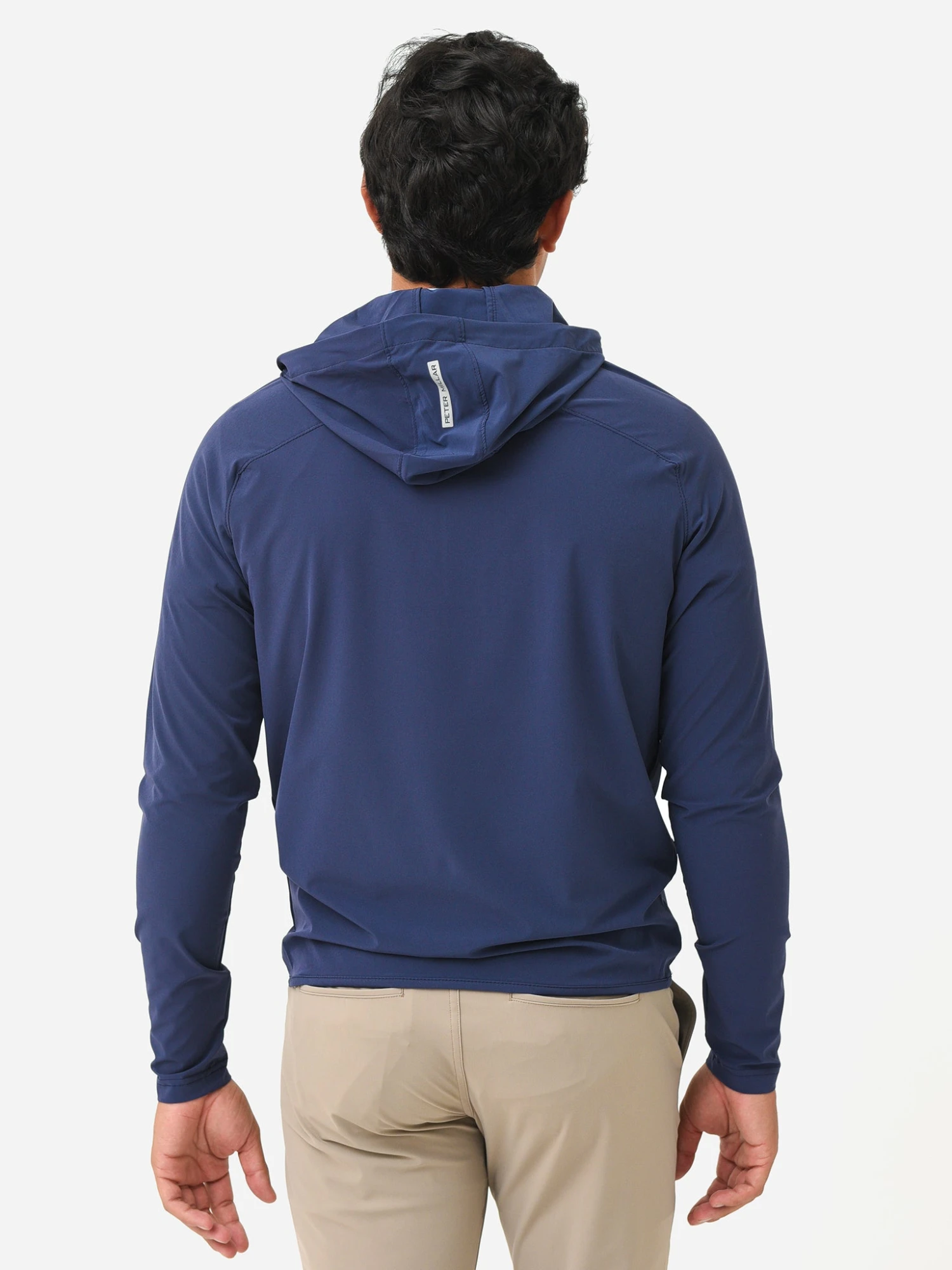 FEATURES:HoodieHigh NecklineHalf-Zip ClosureLong SleeveRight Zip Chest PocketKangaroo PocketPerformance Fabrication4-Way StretchWind & Water-ResistantStraight Hem80% Polyester, 20% SpandexTailored FitModel is wearing size Medium hoodie.Model’s Measurements: Height: 6’0″ | Waist: 32″ | Inseam: 32″ | Collar: 16″ | Sleeve: 35″ | Suit: 40L