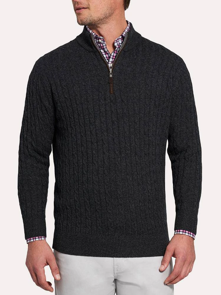FEATURES:28 length (size Medium)Quarter-zip placketStand collarLong sleeves80% cotton, 20% silkHand wash, dry flatImported