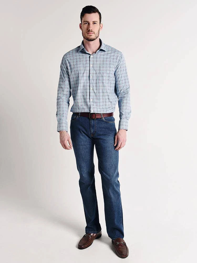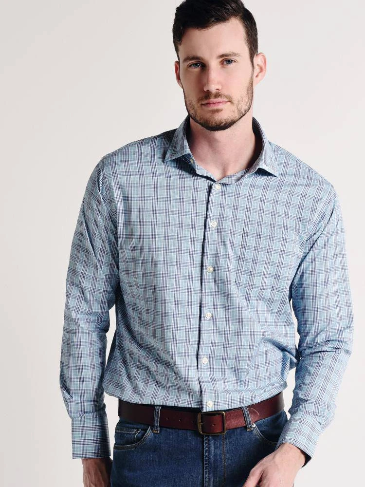 The Peter Millar Grier Performance Glen Plaid Woven Shirt takes you from the weekday to the weekend.