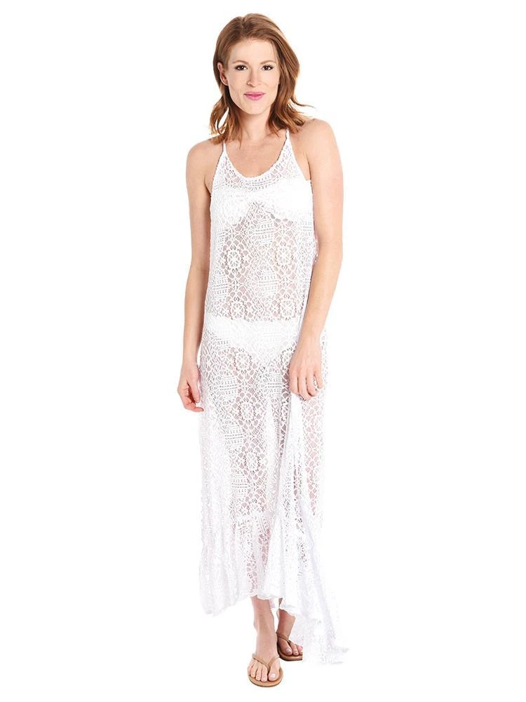 With a high low hemline and sheer detailed lace the PilyQ Harper Dress is a beautiful chic choice.