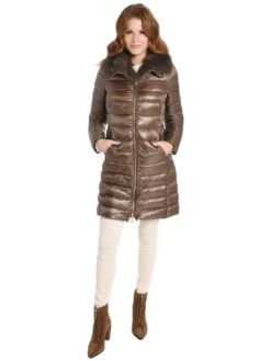 Herno Women’s Straight Fitted Coat With Faux-Fur Lining And Faux-Fur Collar