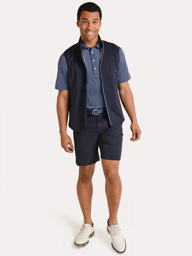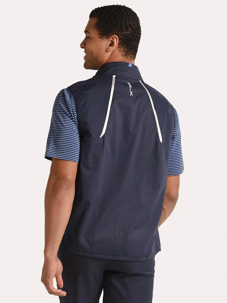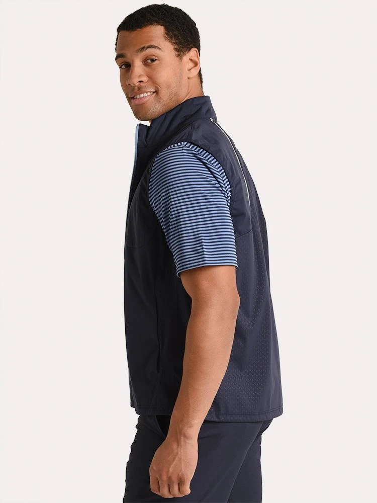 The RLX Paneled Interlock Golf Vest has water-repellent and wind-blocking properties that will keep you dry and comfortable swing after swing.