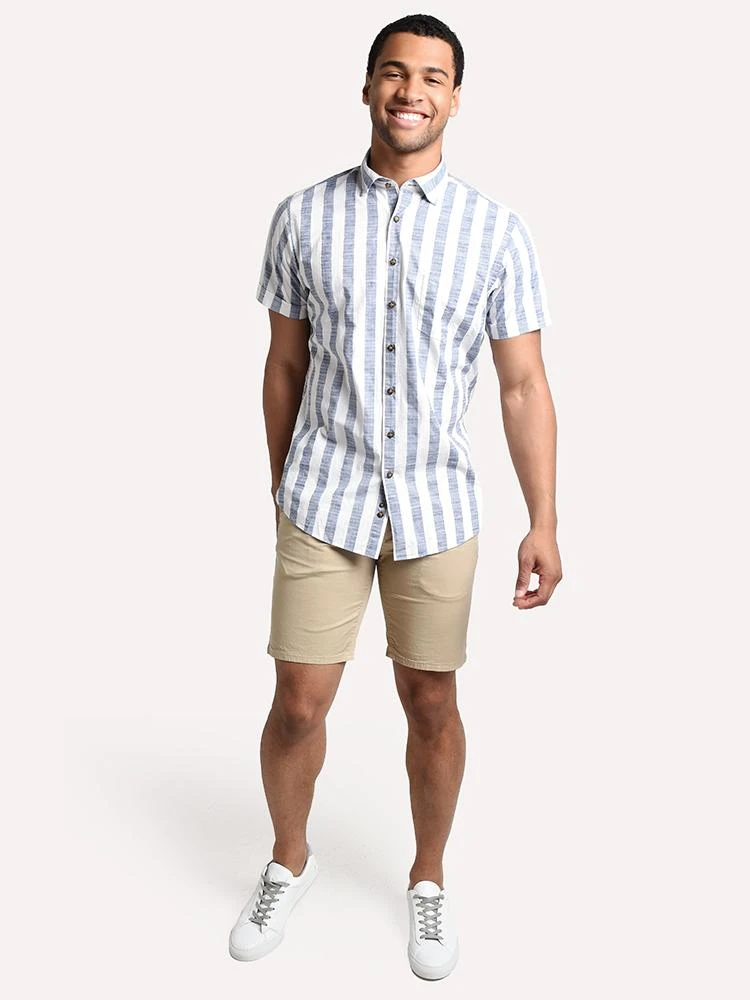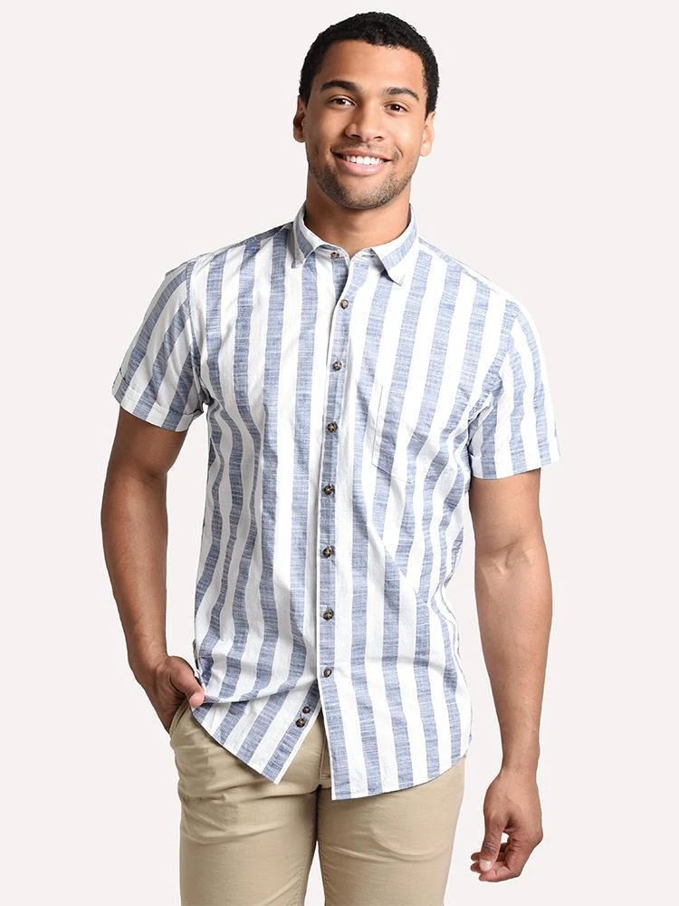 FEATURES:Short Sleeve Button Down ShirtSport FitConcealed Button-Down CollarSpade Chest PocketFrench Front with Vintage Horn ButtonsKnife Pleats at Back YokeCuffed Sleeve HemDeckchair Stripe Print100% CottonStyled with Rodd and Gunn shorts style # UP0641 and KOIO sneakers style # CAGP. Model is wearing size Medium shirt and size 32 short.