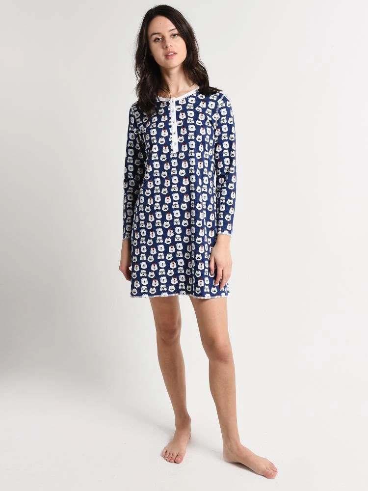 FEATURES:Ultra SoftLong SleeveBear Holiday PrintRounded NeckQuarter Button Placket100% Pima Cotton