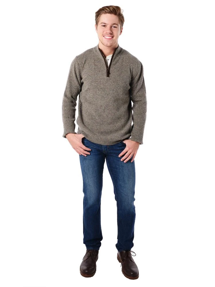 Stay warm and cozy in the 100% Merino Wool Saint Bernard Ribbed Zip Mock Sweater