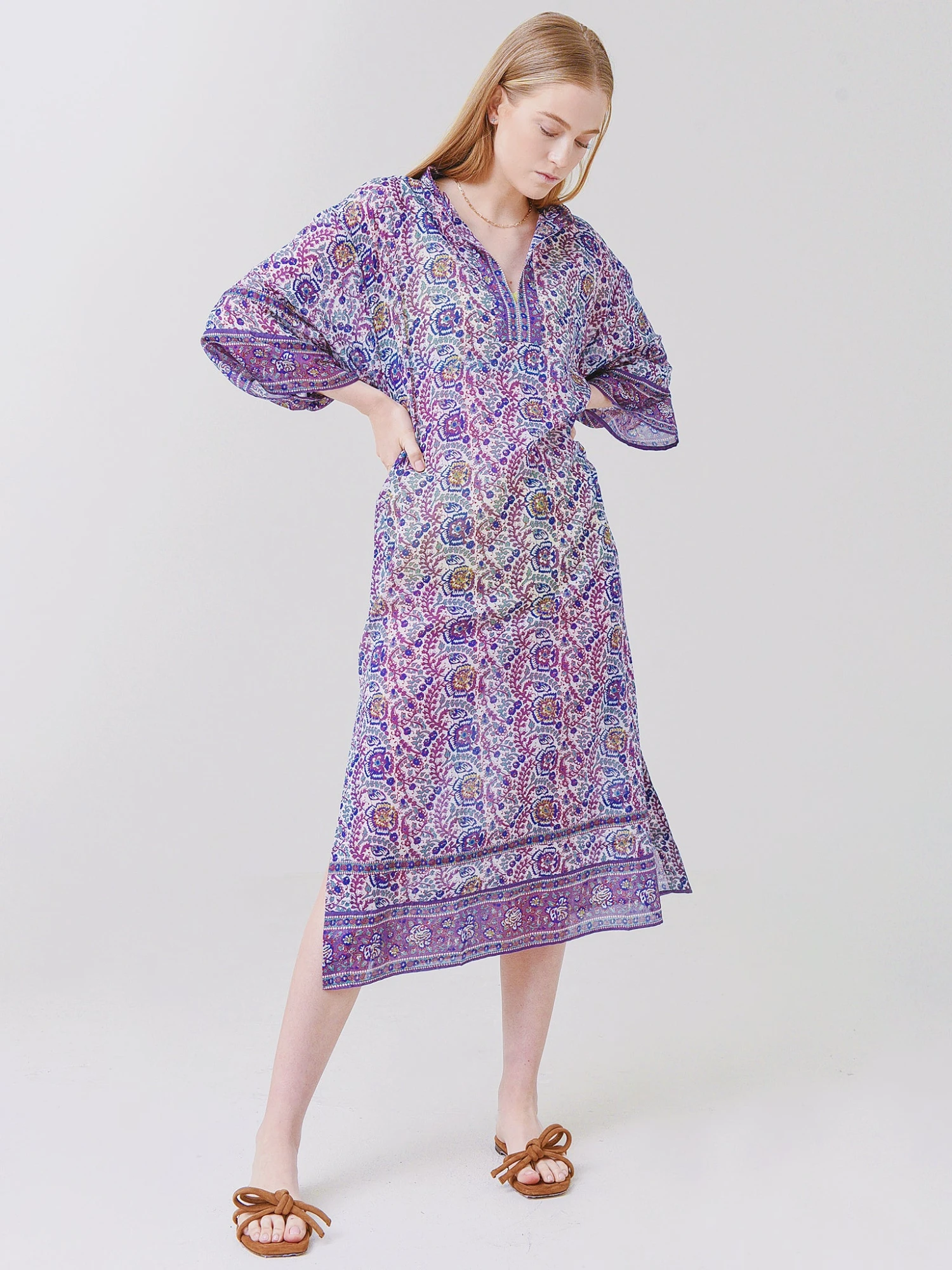 Kaftan cover-up with flowy sleeves and a novelty print.