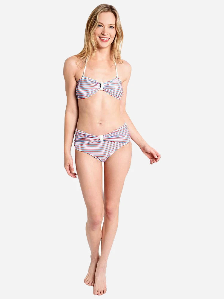 FEATURES:Removable halter tie Front gather detail Back hook closure Lining: 85% polyamide, 15% elastane Fabric: 80% polyamide, 20% elastane Hand wash Styled with Solid and Striped bikini bottoms Style # WS-1090-1248. Model is wearing size small top and bottom.