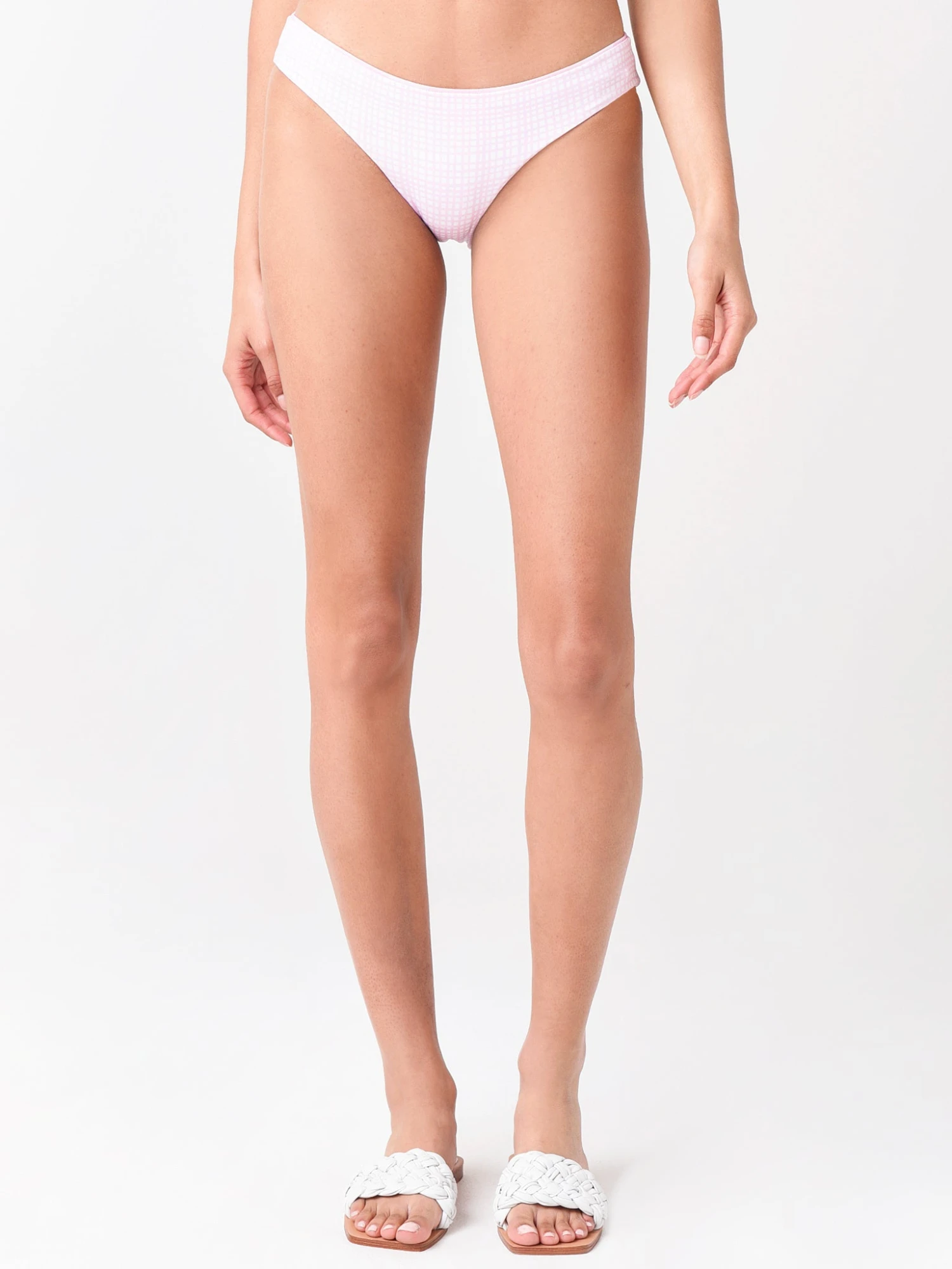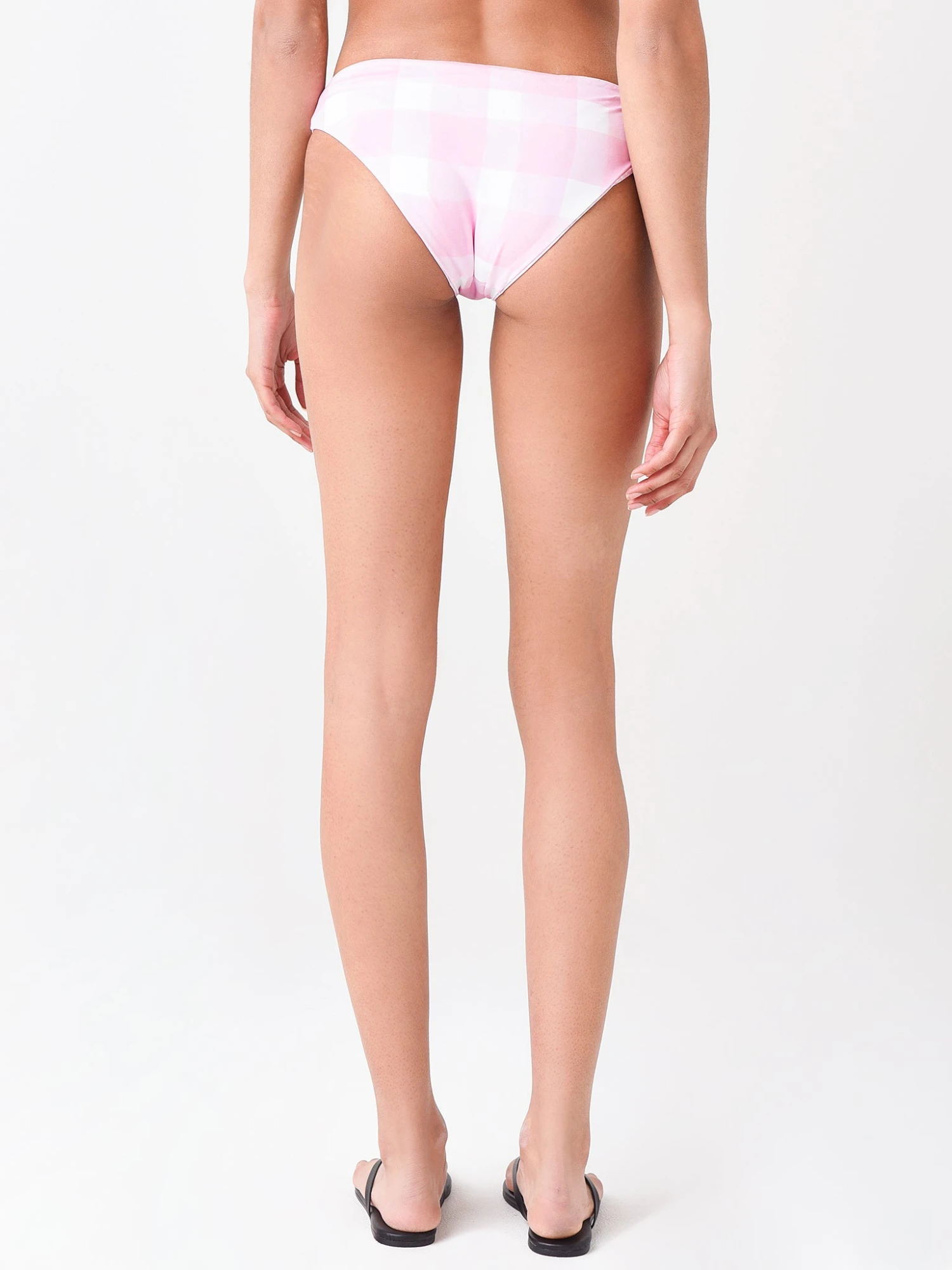 FEATURES:Hipster Style Bikini BottomElasticized WaistbandPull-On WearabilityAll-Over Plaid PrintFully ReversibleModerate CoverageFully-LinedClassic Fit80% Nylon, 20% ElastaneModel is wearing size Small bikini bottom.Model’s Measurements: Height: 5’10”; Bust: 32C; Waist: 25″; Hips: 35″; Dress Size: 0 (US)