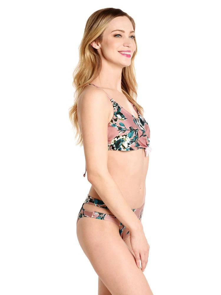 FEATURES:Scoop neckline.Removable contour pads provide support and shape.Tie detail at bottom front.Crisscross shoulder straps lace and tie at middle back.Slip-on design.83% polyester, 17% spandex.Hand wash, dry flat.Imported.Styled with Splendid Bikini Bottom Style # SP10358. Model is wearing size small top and bottom.