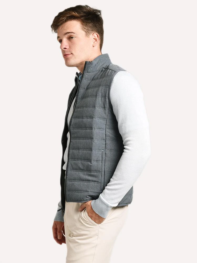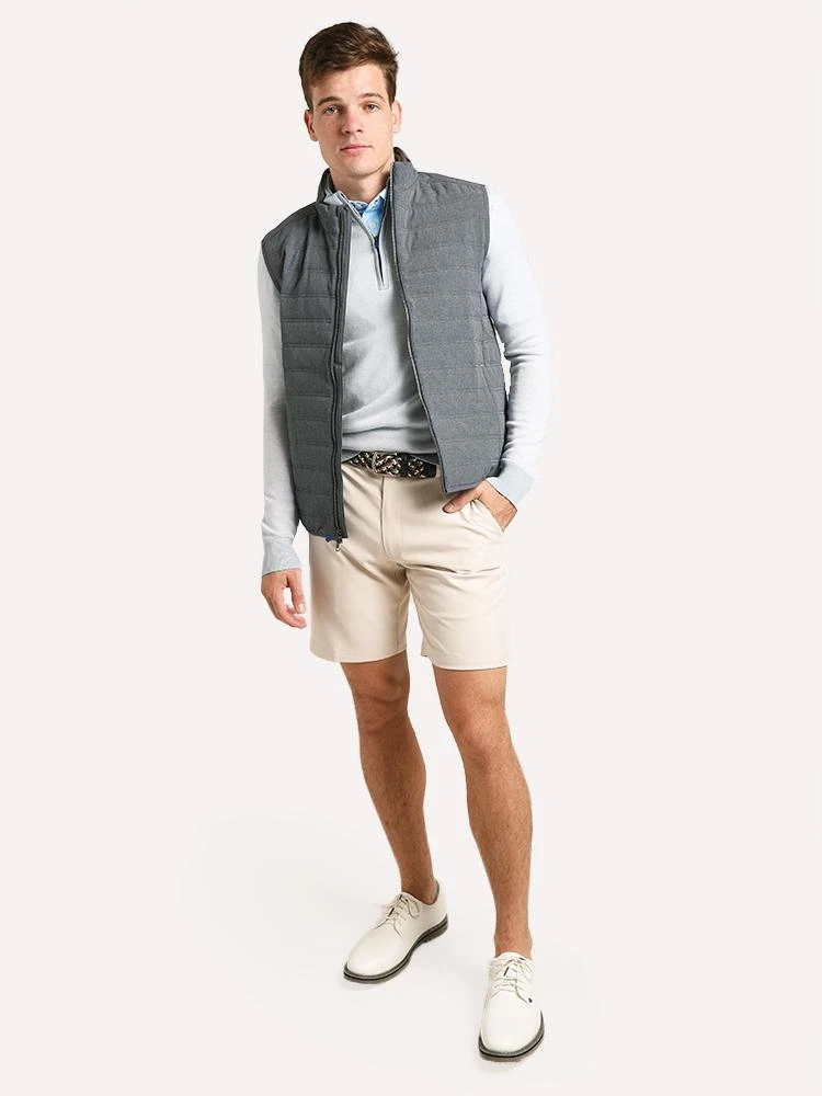 FEATURES:Quilted VestThermore Ecodown FillExceptional Mobility4-Way StretchSoft InsulationStitch Logo on Back CollarQuilted DetailFull-Zip Closure43% Polyester, 43% Cationic Polyester Yarn, 14% SpandexStyled with Stitch pullover Style # 191SA0354, Stitch polo Style # 192SA0082, Peter millar short Style # ME0EB82 and G/Fore shoe Style # G4MC0EF01. Model is wearing siz emedium vest, pullover, polo and size 32 short.