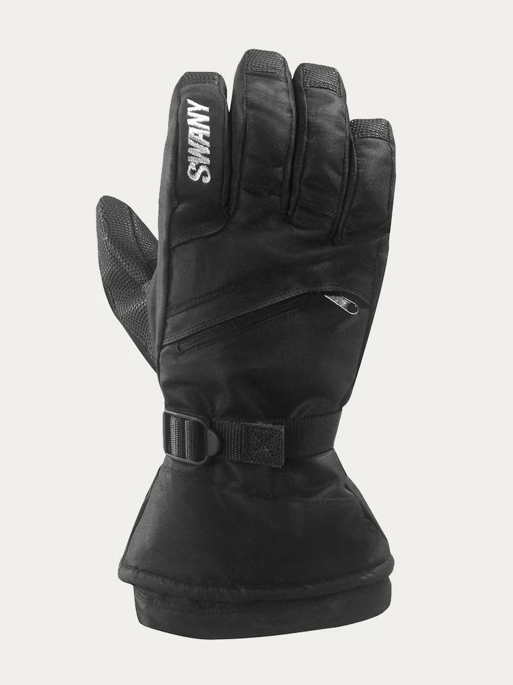 FEATURES:SHELL: Swany SoftShell and Taslan DryShell with Touch Screen Compatible PU Leather PalmINSULATION: Insuloft with Swany Dry Lining, Hipora Waterproof Breathable Insert.FEATURES: Utility Heat Pocket with Zipper Closure, Quick Release Strap, Rolled Finger Construction, Barrel Lock Cuff, Nose Wipe