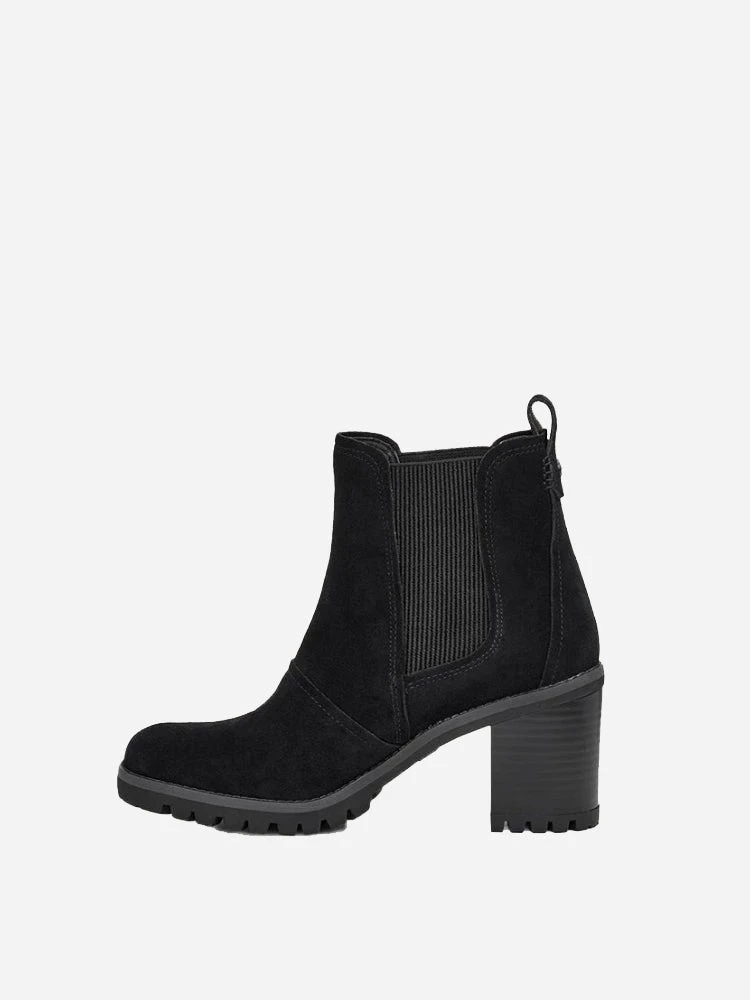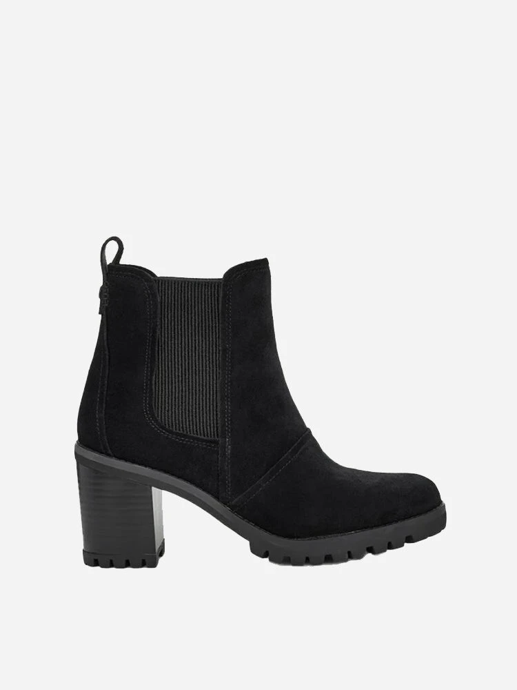 FEATURES:Winter BootieUpper: Waterproof SuedeLateral and Medial Non-Wicking Gore DetailTextile/Synthetic LiningSeam-Sealed Waterproof ConstructionCushioning Foam Lined with synthetic; Heat-Embossed UGG Waterproof Logo BrandingSynthetic WeltMolded Rubber OutsoleShaft Height: 4.75 in. Heel Height: 3.25 in.