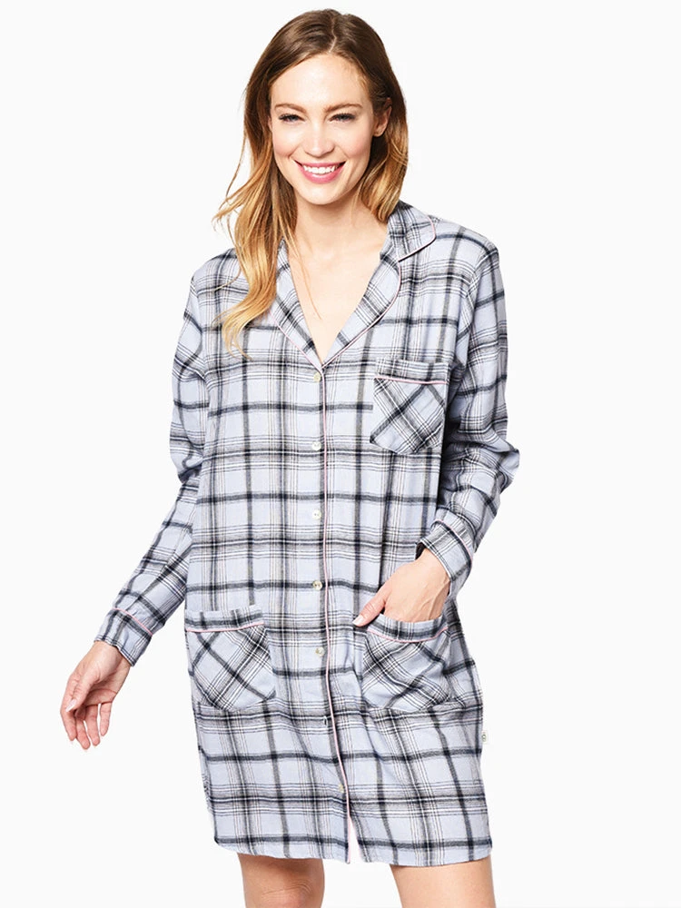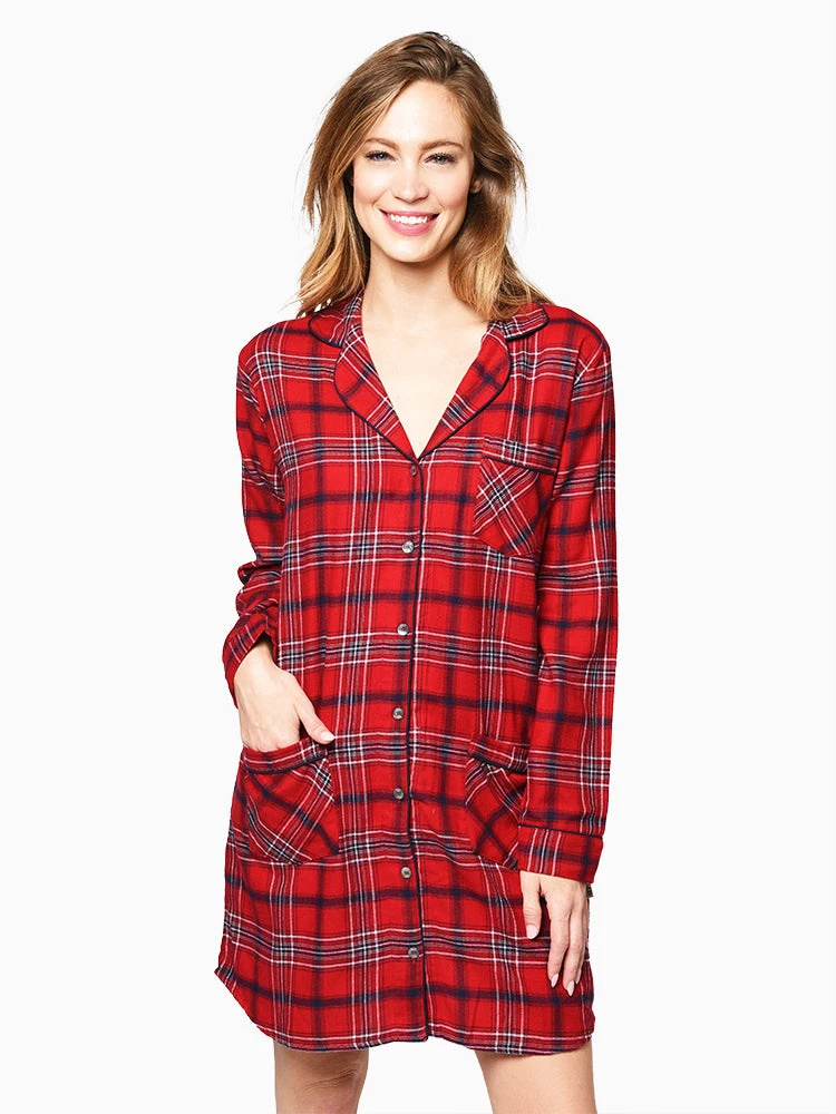 FEATURES:Windowpane Plaid PatternNotch CollarButton FrontLong SleevesSatin Piping ThroughoutFront Patch Pockets and Chest PocketMaterial: 60% Cotton, 40% PolyesterLeda Cozy Sock: 100% PolyesterGift Ready – Folded with a Holiday Branded Belly Band