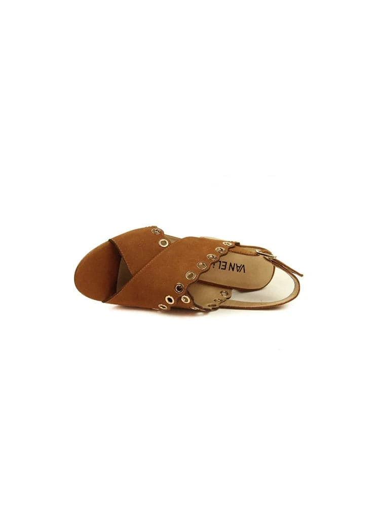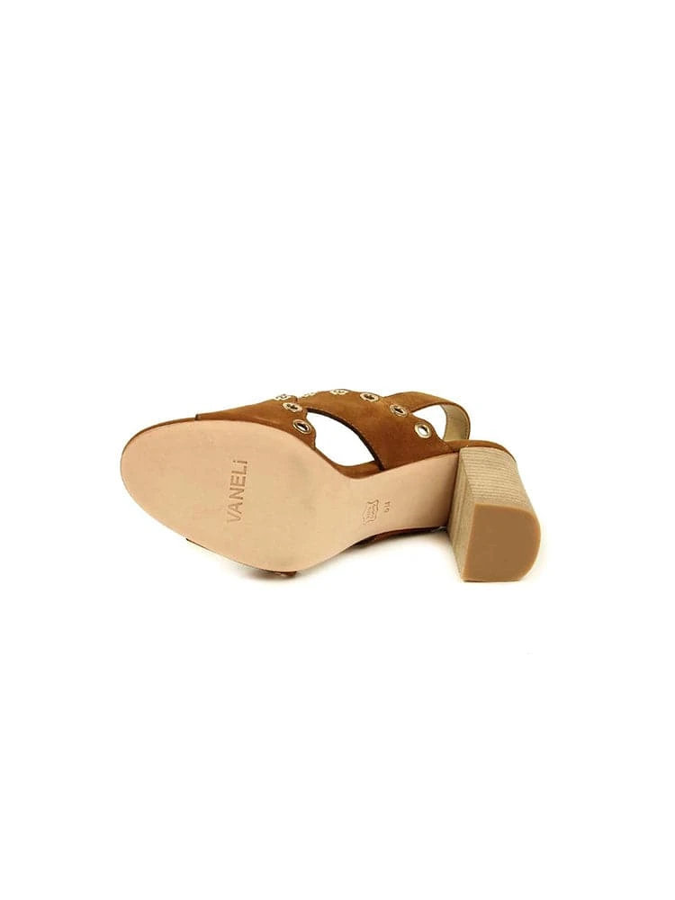 The Vaneli Barth Sandle is on trend with a chunky heel and gromet trim.