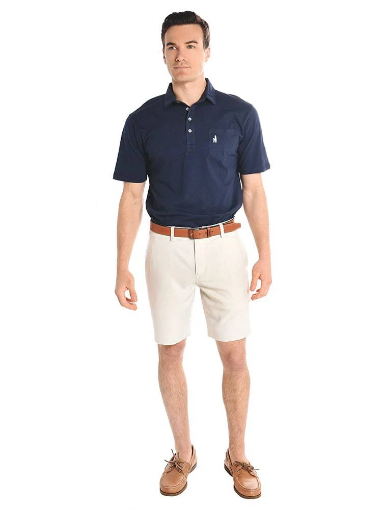 FEATURES:Lightweight, durable performance short takes you from golf course to country club with ease.Added stretch for easy mobility.Quick-dry fabrication for all-day comfort.Mid-rise, belt loop waistband with flat-front styling.Zip fly and button closure.Slant hand pockets.Rear button-through besom pockets.Signature whale embroidered above right rear pocket.100% polyester.Machine wash, tumble dry.Imported.Styled with Sperry Style # 0197640 and Johnnie O Polo Style # JMP01011. Model is wearing medium polo and 32 short.