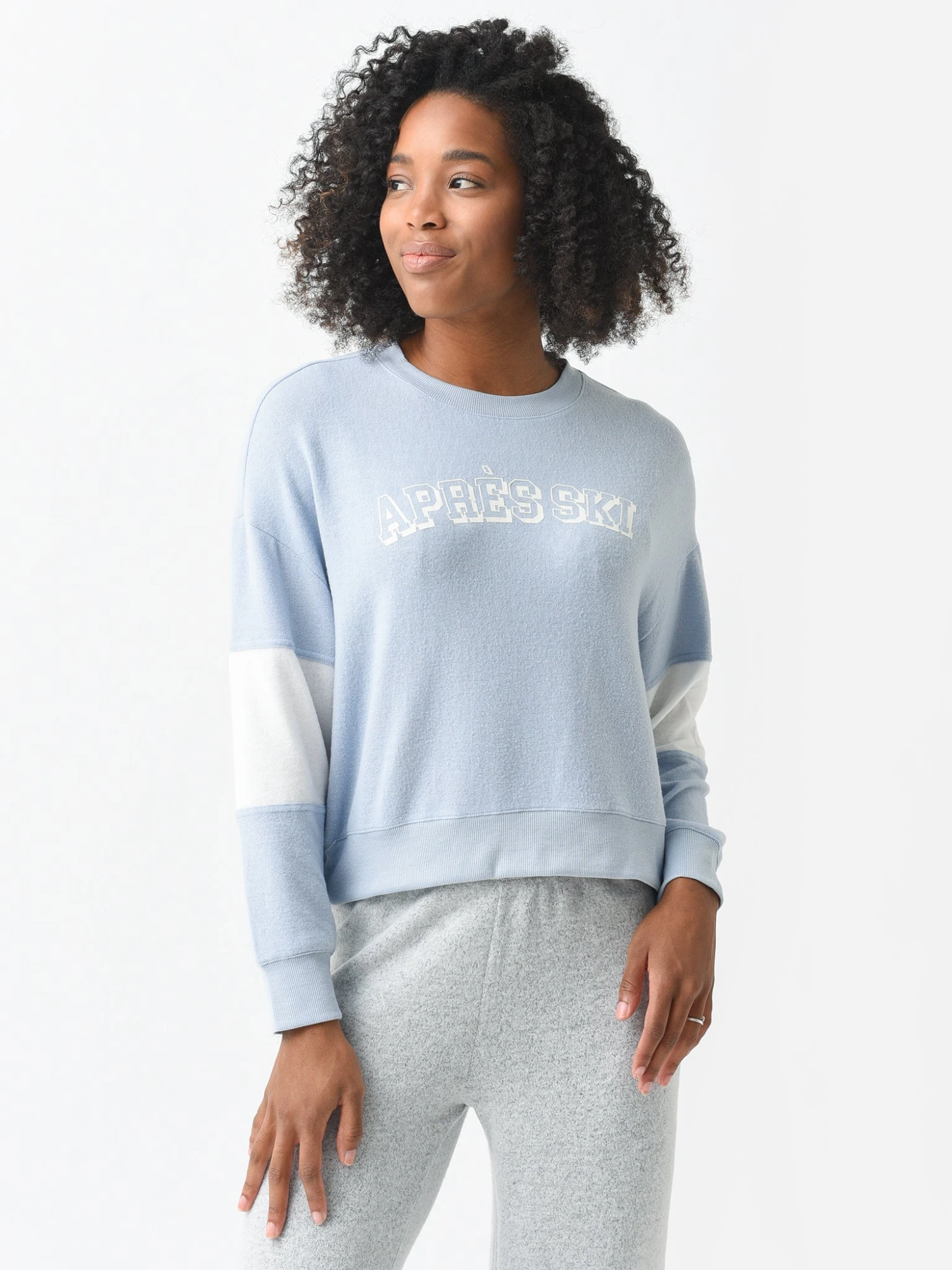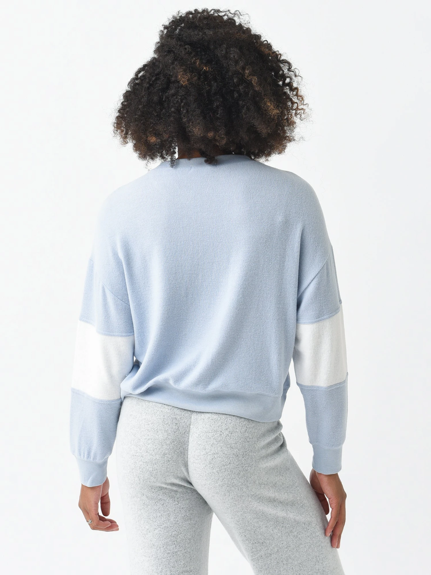 FEATURES:TopCrew NecklineDropped ShoulderLong Sleeve with Contrast DetailFront GraphicStraight HemBrushed Knit FabricationBanded Cuffs and Hem62% Polyester, 33% Rayon, 5% SpandexRelaxed FitModel is wearing size Small top.Model’s Measurements: Height: 5’10” | Bust: 34B | Waist: 25.5″ | Hips: 36.5″ | Dress Size: 2 (US)